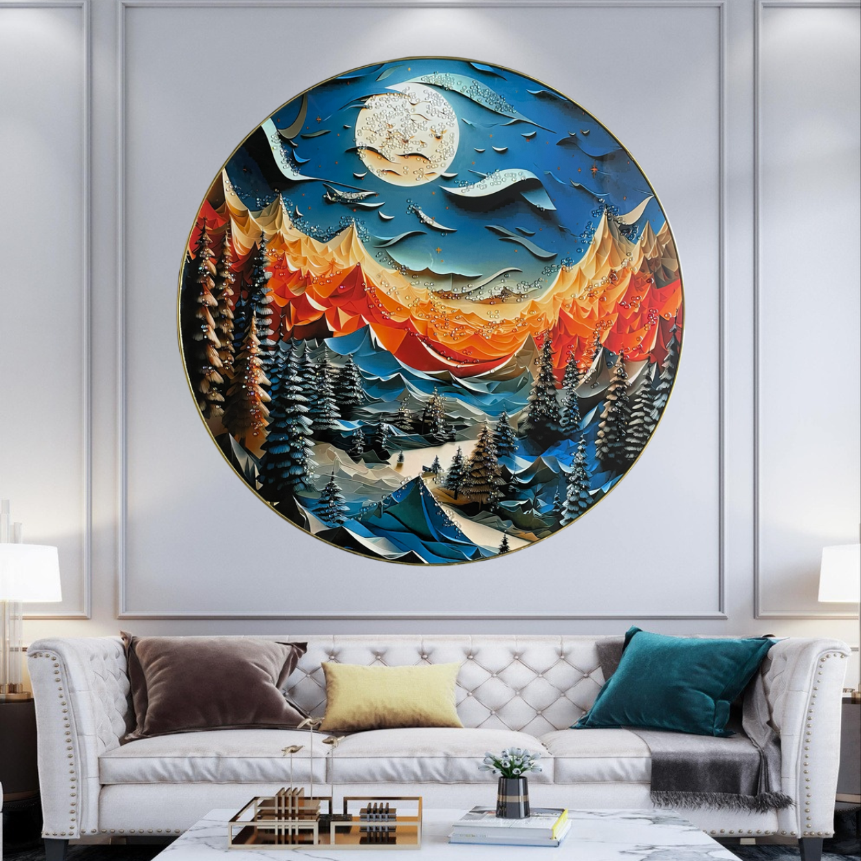 Scenery crystal paintings are unique artworks that incorporate vibrant landscapes and natural scenes, enhanced with sparkling crystals. Each piece captures the beauty of nature—be it tranquil mountains, serene lakes, lush forests, or breathtaking sunsets—while the crystals add a dazzling effect that catches the light and draws the eye.