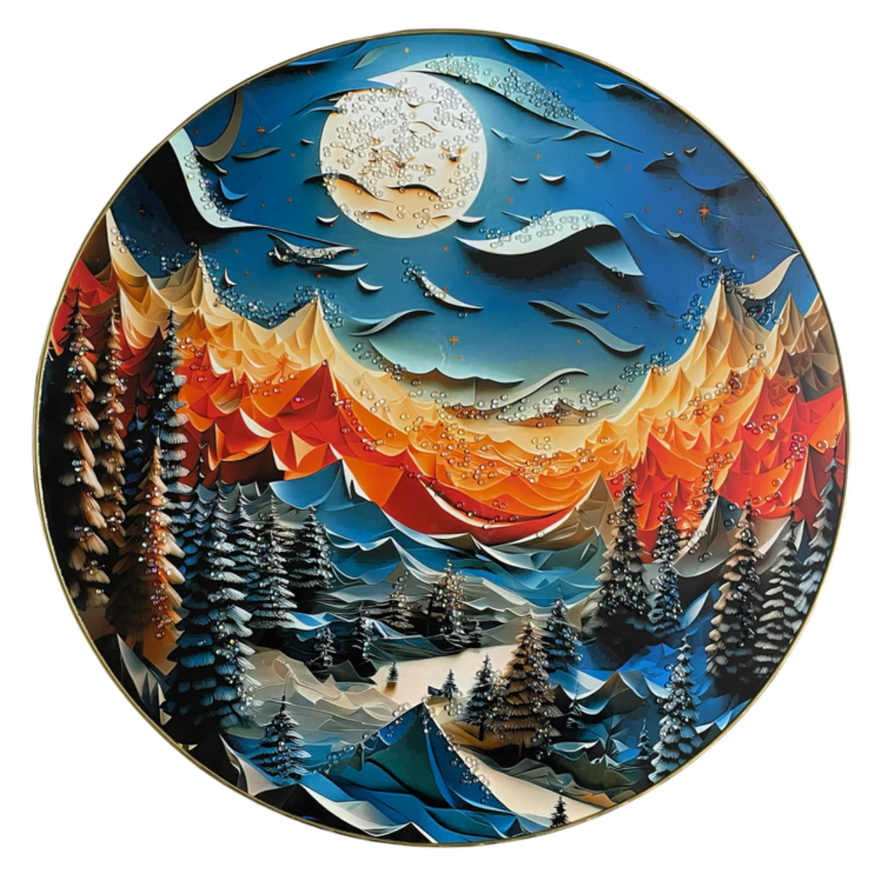 Scenery crystal paintings are one-of-a-kind pieces of art that feature vivid natural settings and landscapes that are accented with shimmering crystals.